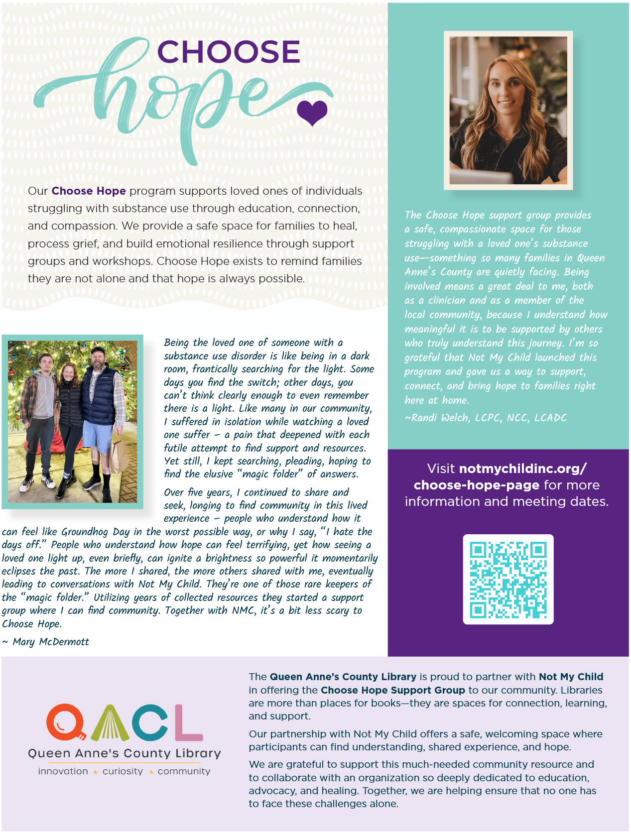 CENTREVILLE — Not My Child has made a $2,500 donation to Camp New Dawn, a grief retreat hosted by Compass for children, teens and families who are struggling with the loss of a loved one. Campers learn healthy coping skills that will benefit them throughout their lives. They engage in group discussions and activities with other kids who have experienced loss, and interact with professional grief counselors who help them learn about and express grief in a safe, natural environment. CND is open to anyone ages 3-18 who is learning to navigate their grief, including those who have lost a loved one to substance abuse.