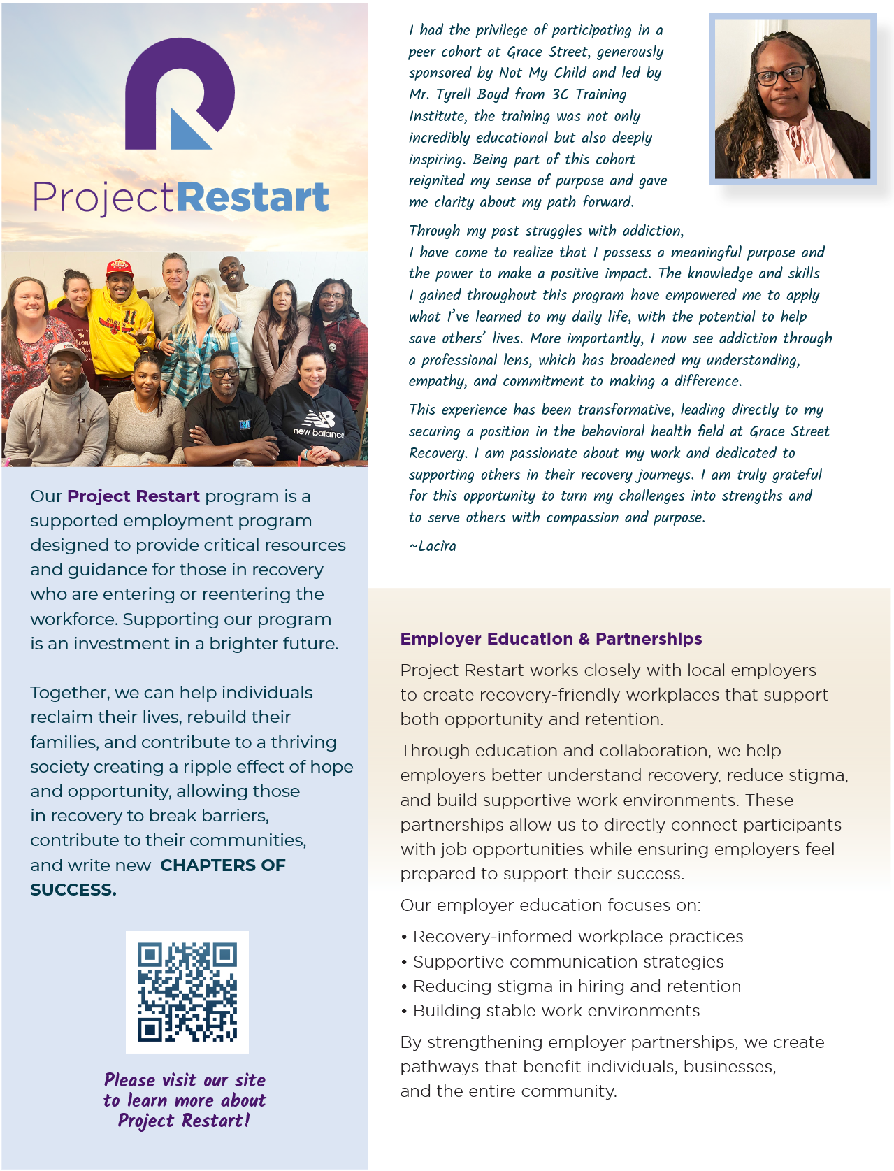 Congratulations to our Project Restart participants for getting their Certified Medical Tech Training at our Cohort with Grace Street and Talisha Tilghman, RN. Learn more about Grace Street here.